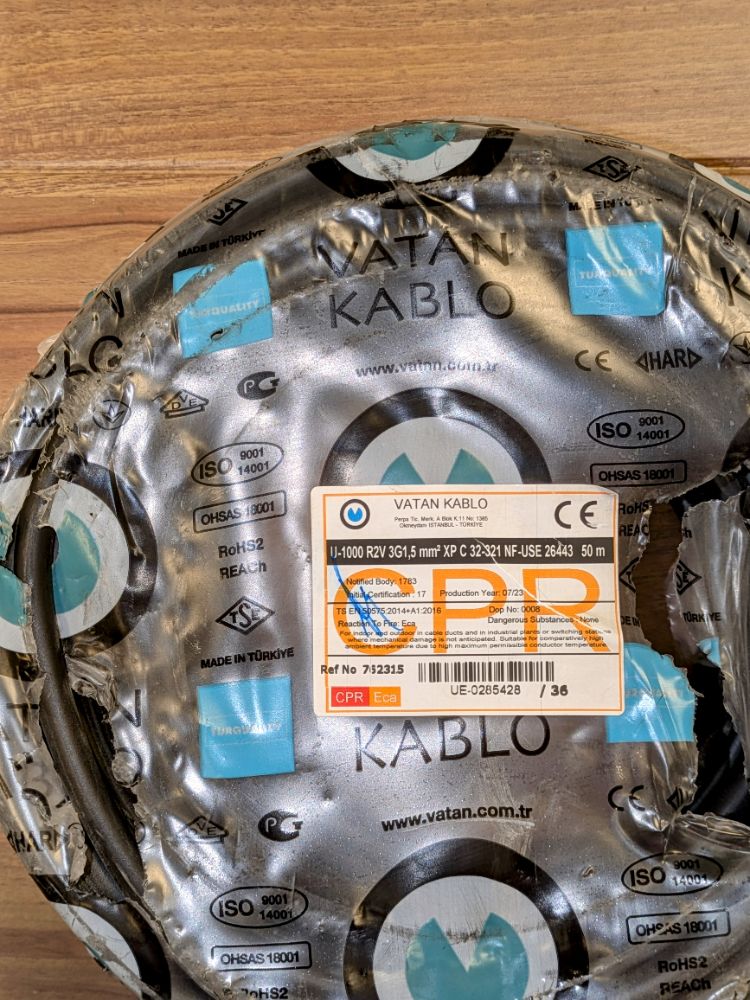 Câble électrique U1000R2V 3X1,5 mm² couronne 50 m