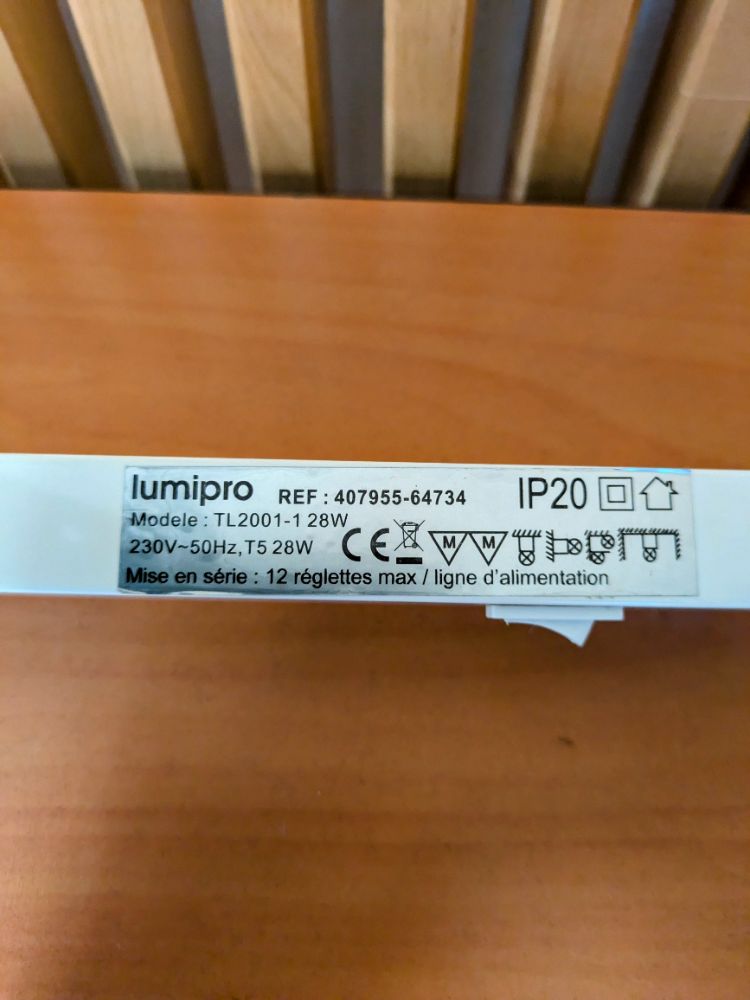 lumiro TL 2001 – 28W / 230V – 50hZ T5 / Mise en série : 12 réglettes max / ligne d’alimentation
